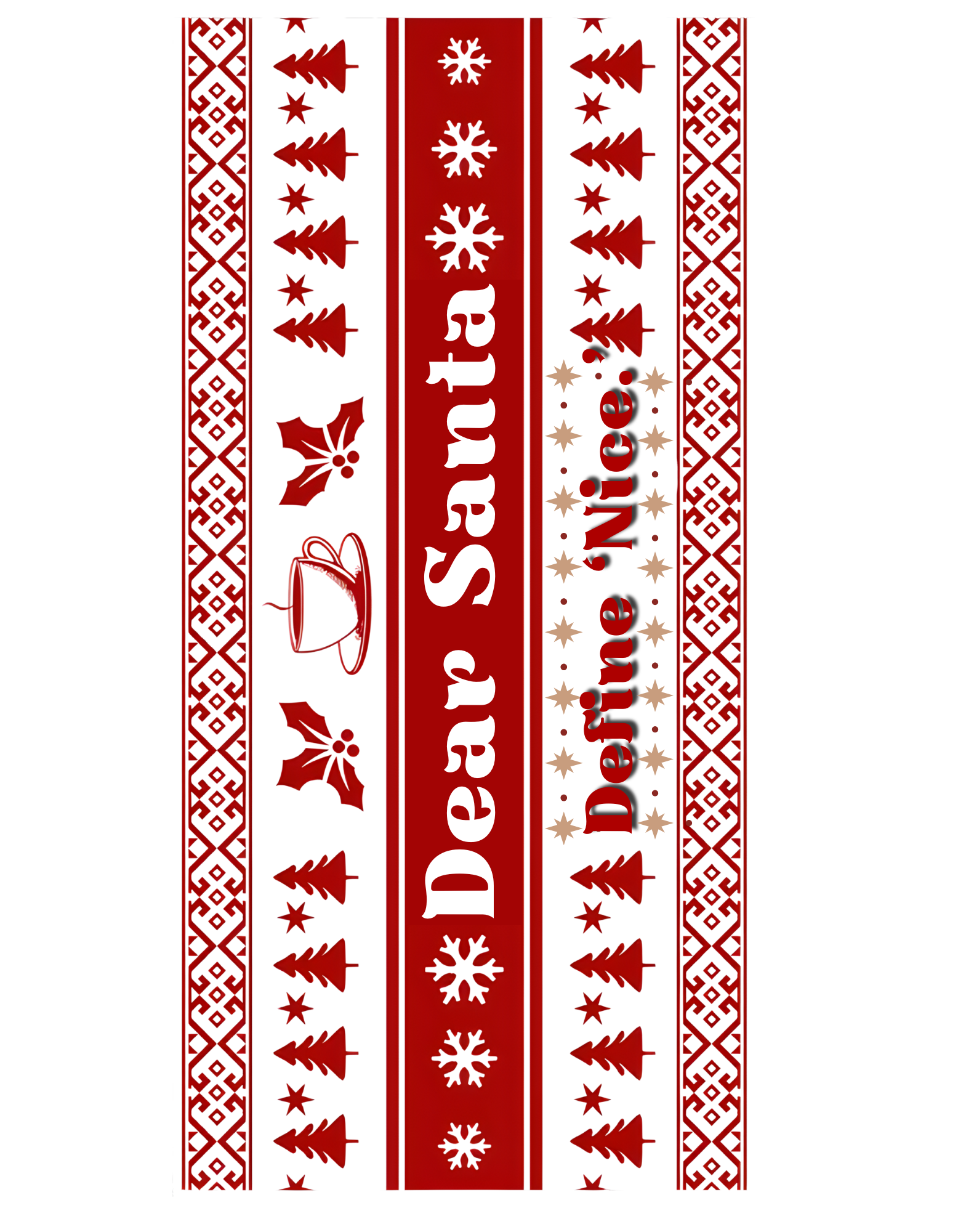 Our “Dear Santa, Define ‘Nice’” mug is perfect for those who know that being good is all about perspective. Whether you’ve been naughty, nice, or somewhere in between, this festive mug will make your coffee breaks a little more fun.
