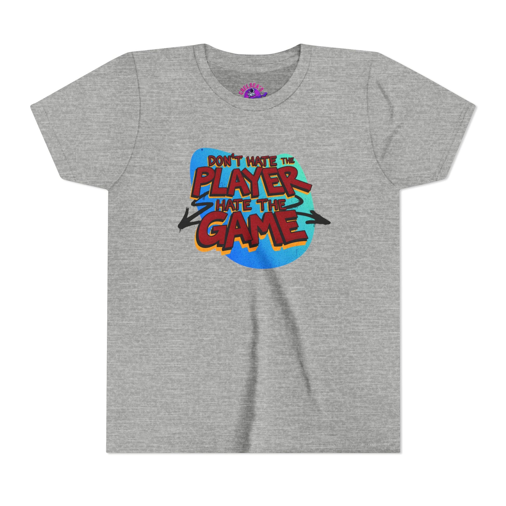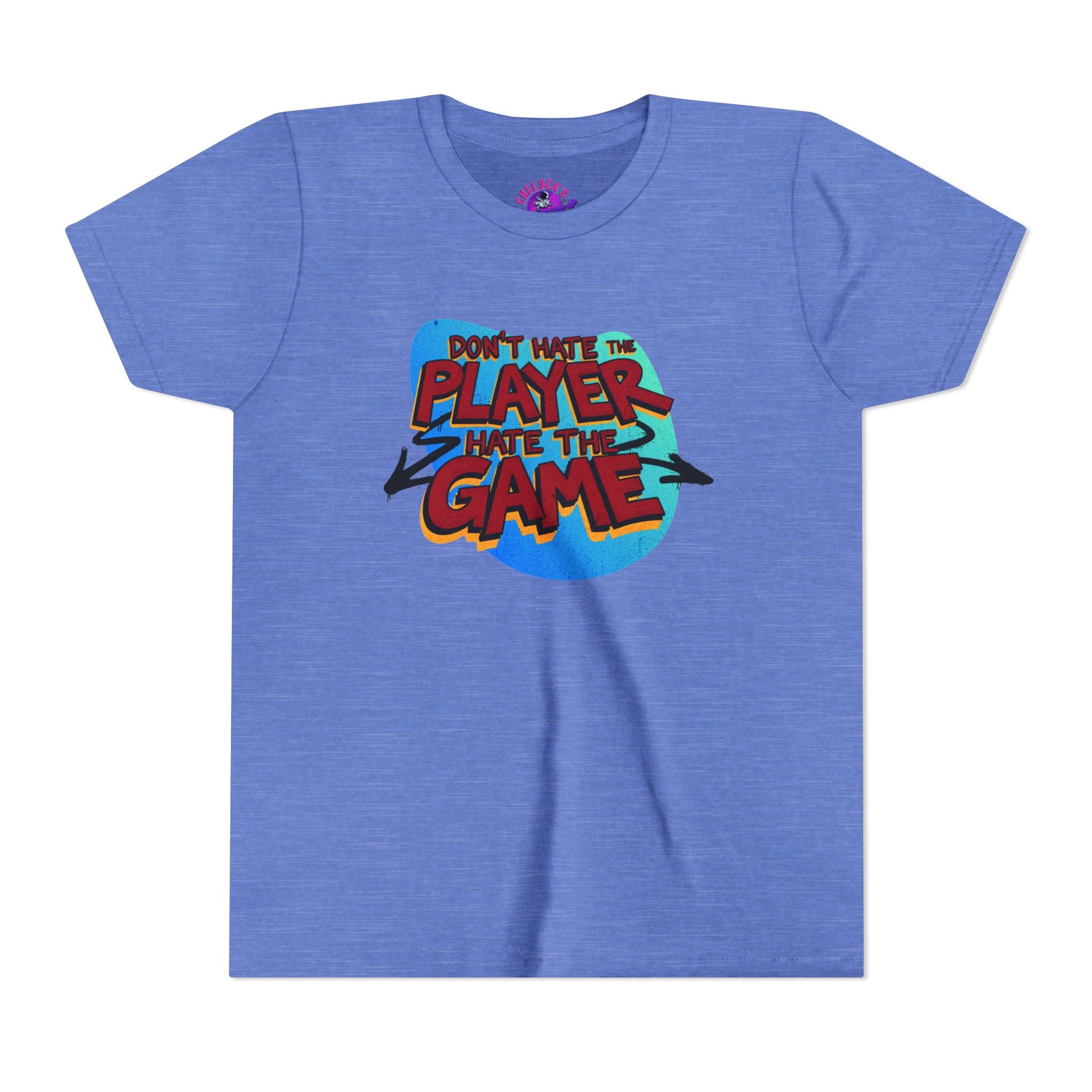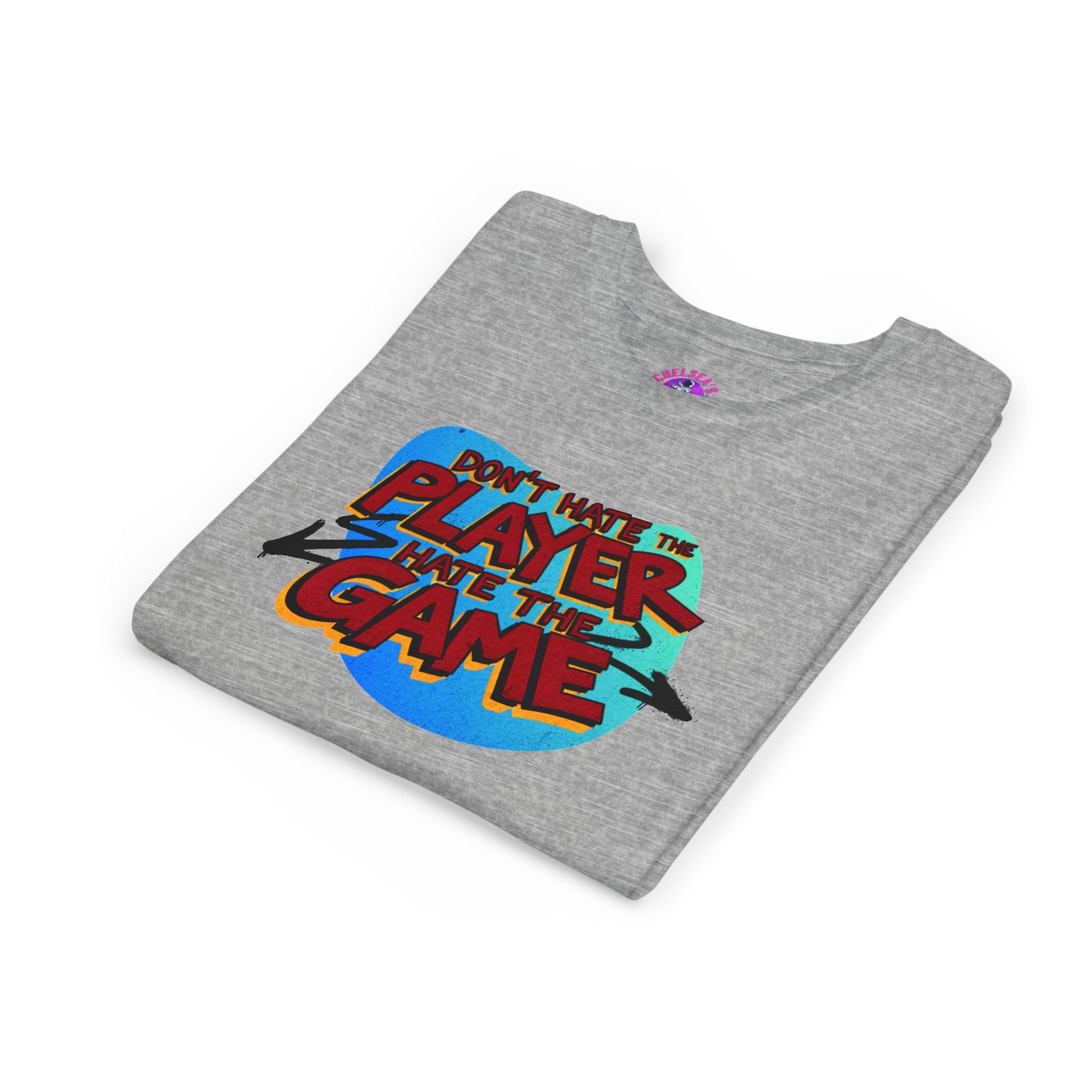 Cool, confident, and full of attitude — just like your little one! This fun tee features the classic phrase “Don’t Hate the Player, Hate the Game” in bold red comic-style graffiti, giving it that playful street-cool vibe every kid loves.