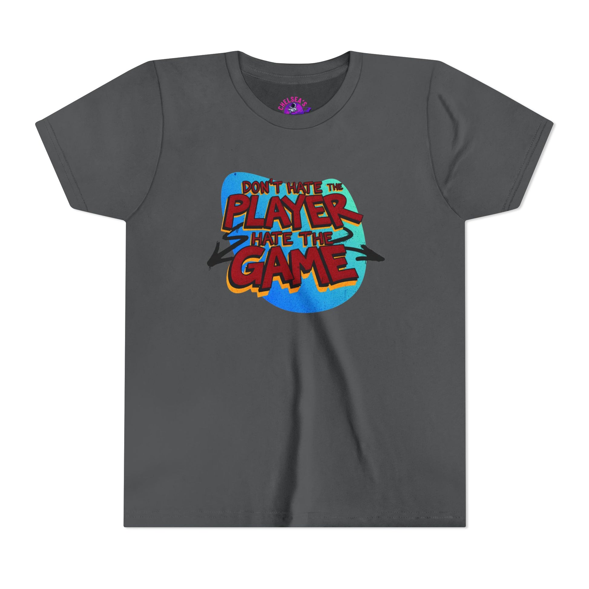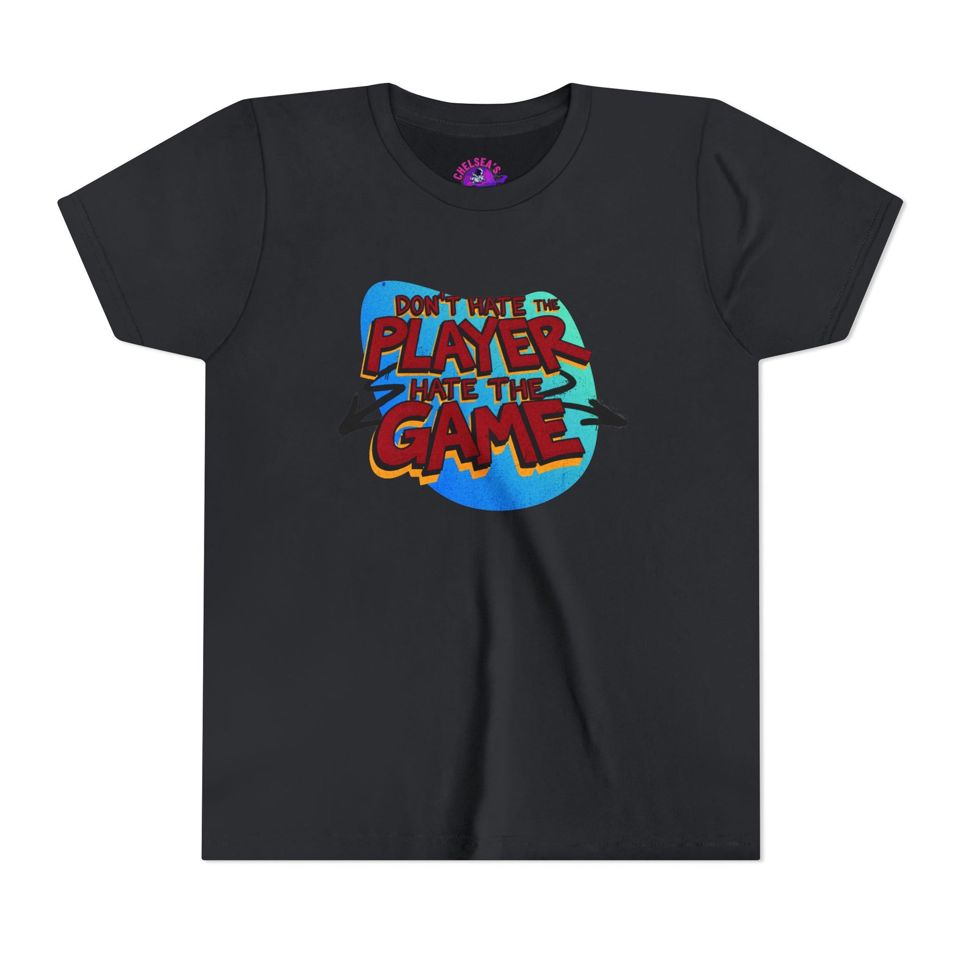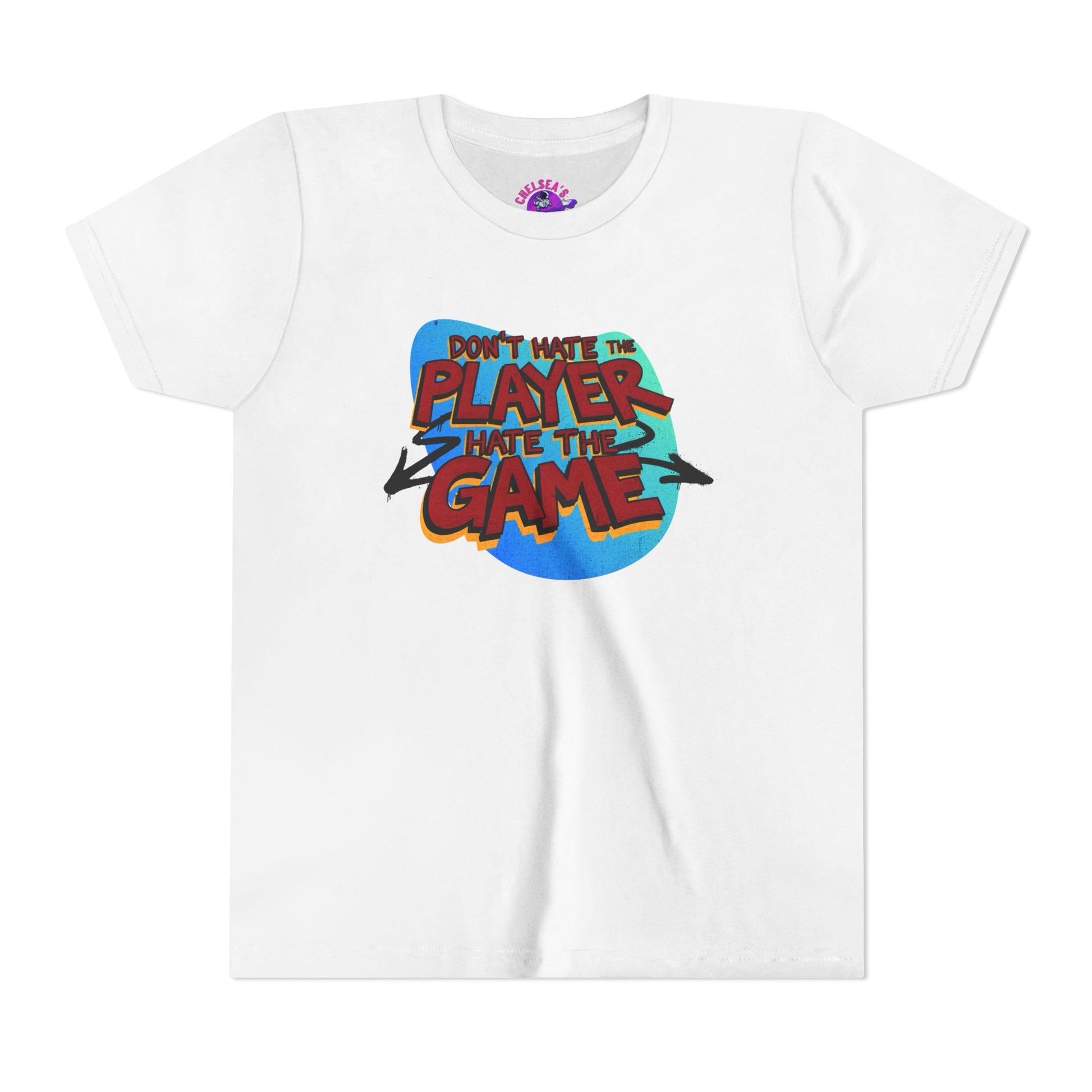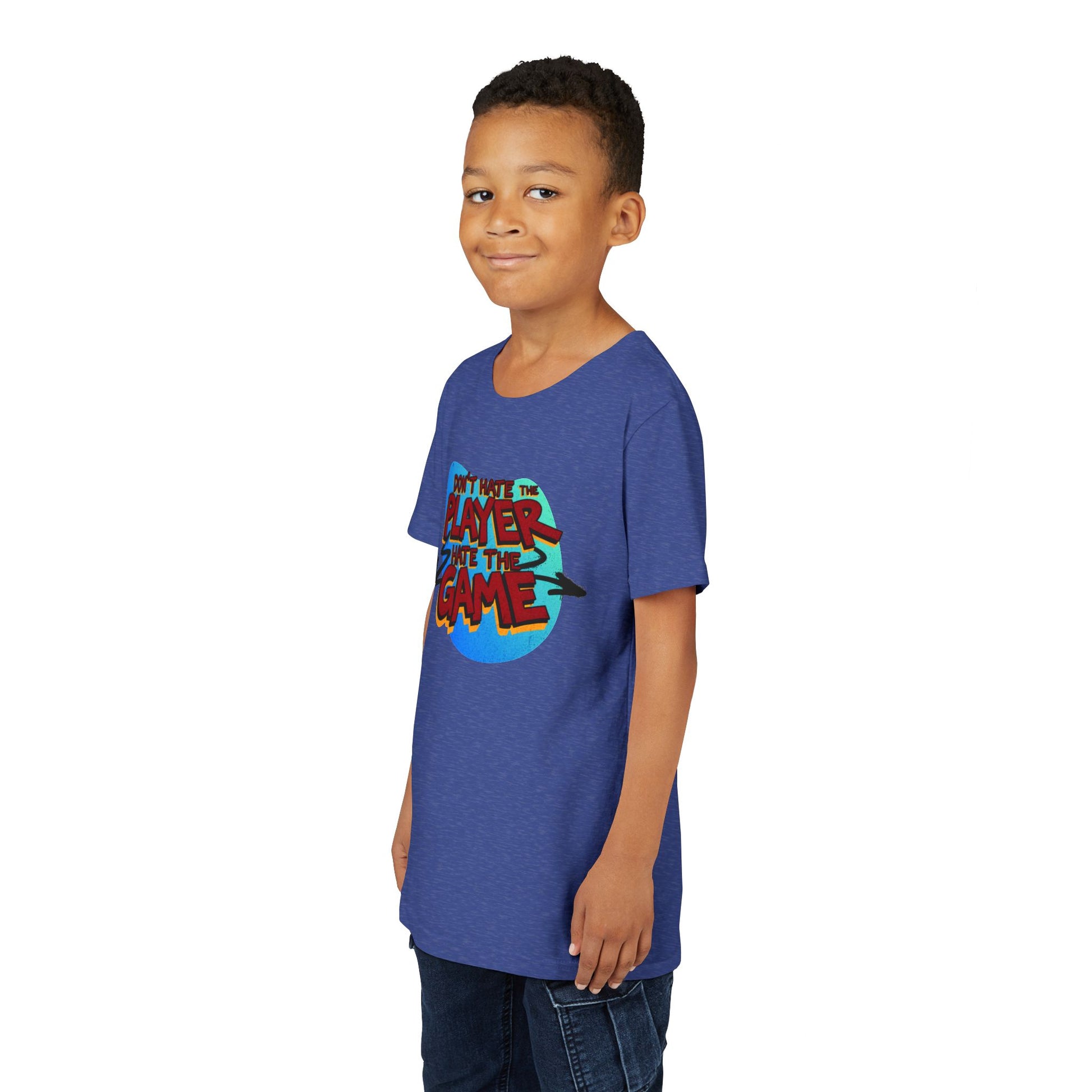 Cool, confident, and full of attitude — just like your little one! This fun tee features the classic phrase “Don’t Hate the Player, Hate the Game” in bold red comic-style graffiti, giving it that playful street-cool vibe every kid loves.